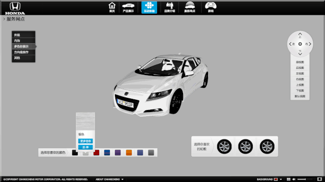 汽车3D营销展示:用户可通过键盘、鼠标在3D场景中身临其境般地进行外部观看、内饰方案更换、汽车内部结构观察等全方位的任意交互。同时,系统配备了相关的客户交互体验功能,如拖拽、爆炸、显影交换等,使消费者在没有见到实车之间,便对新车有了深入的了解。