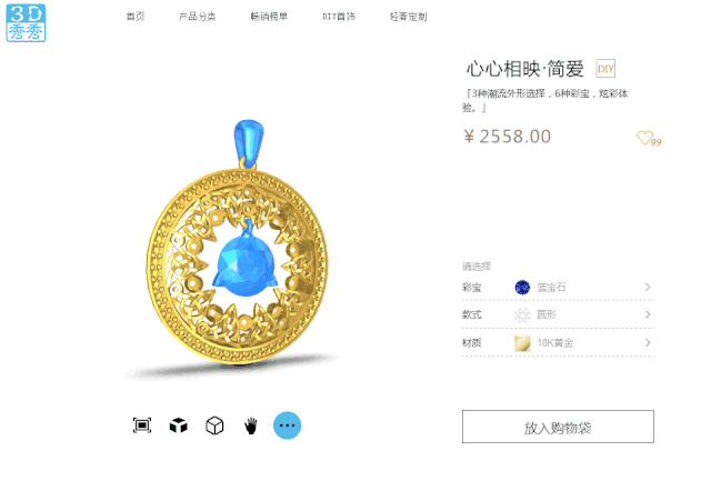 珠宝3D营销展示:支持珠宝首饰的在线选款、组拼设计、三维浏览等服务。