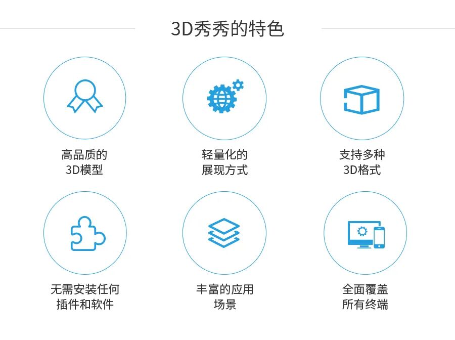 目前,通过3D秀秀来打造网上3D展厅,实现产品的在线3D展示,可以无缝嵌入电商、微信、官网、H5、APP等终端。通过一行iframe代码,就可将三维体验轻松引入您的产品或平台,也支持为用户的业务场景深度定制开发。
